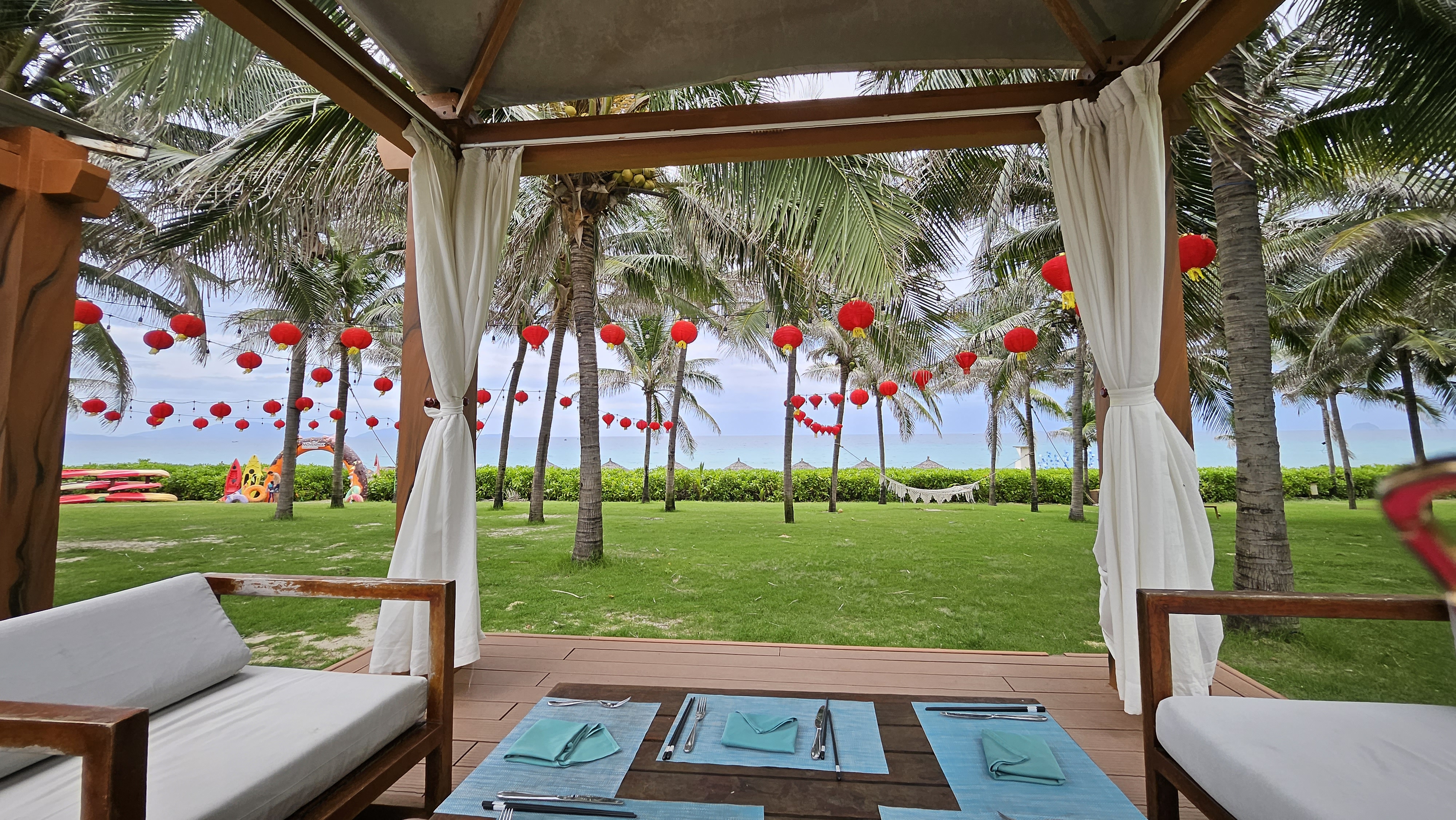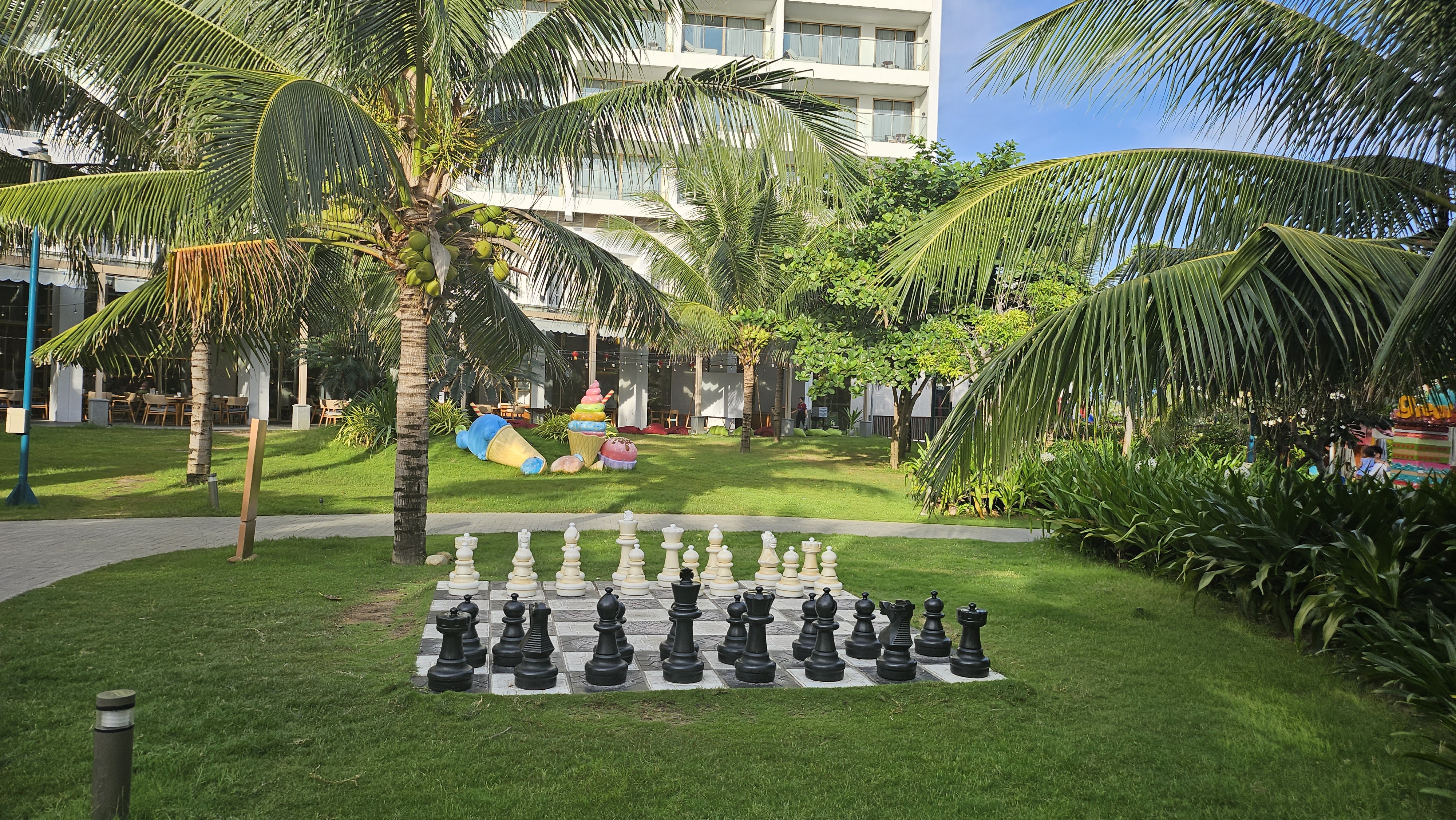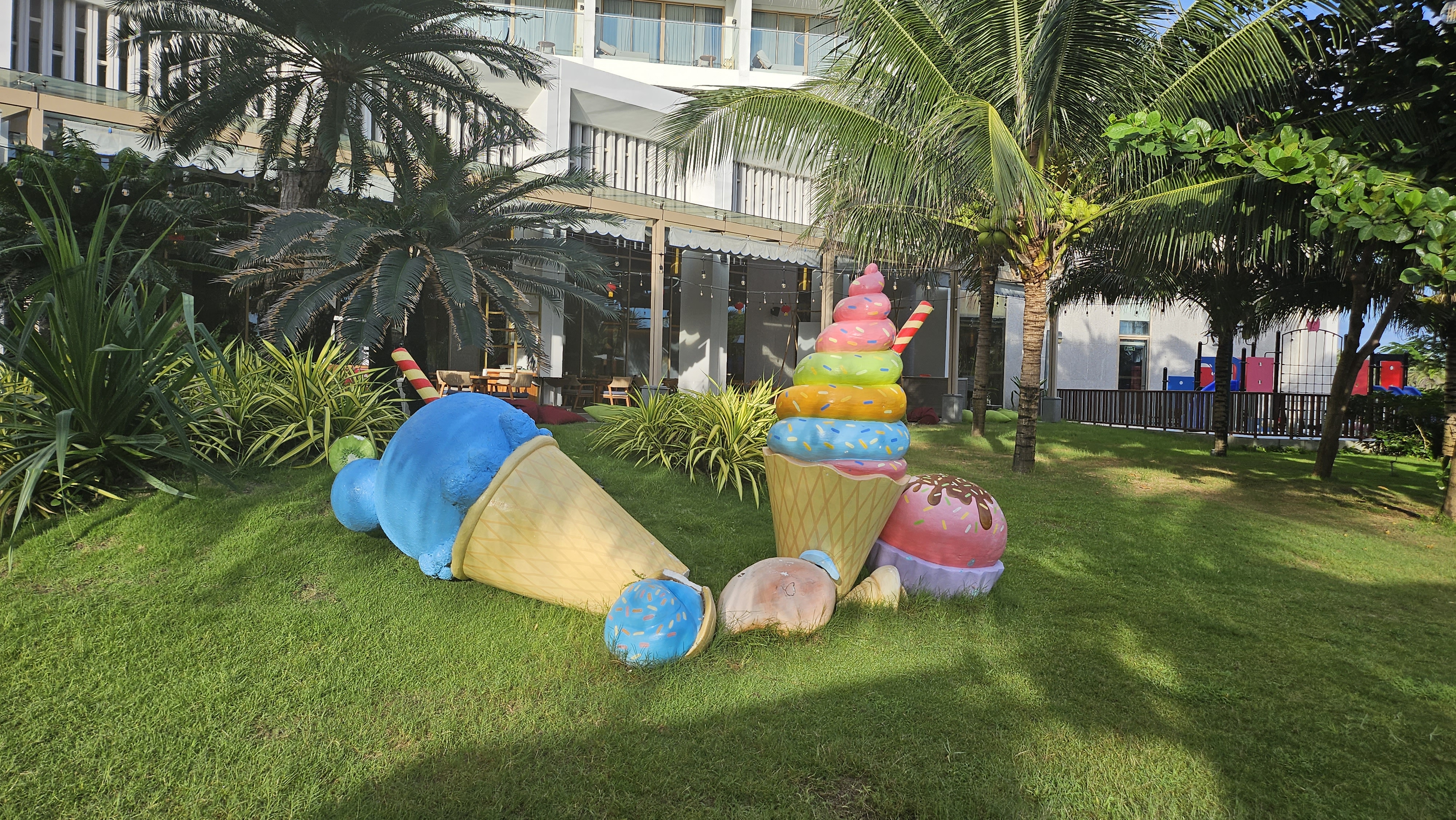 리조트에 잔디를 잘 깔아놔서 초록초록하고 예쁘네요.