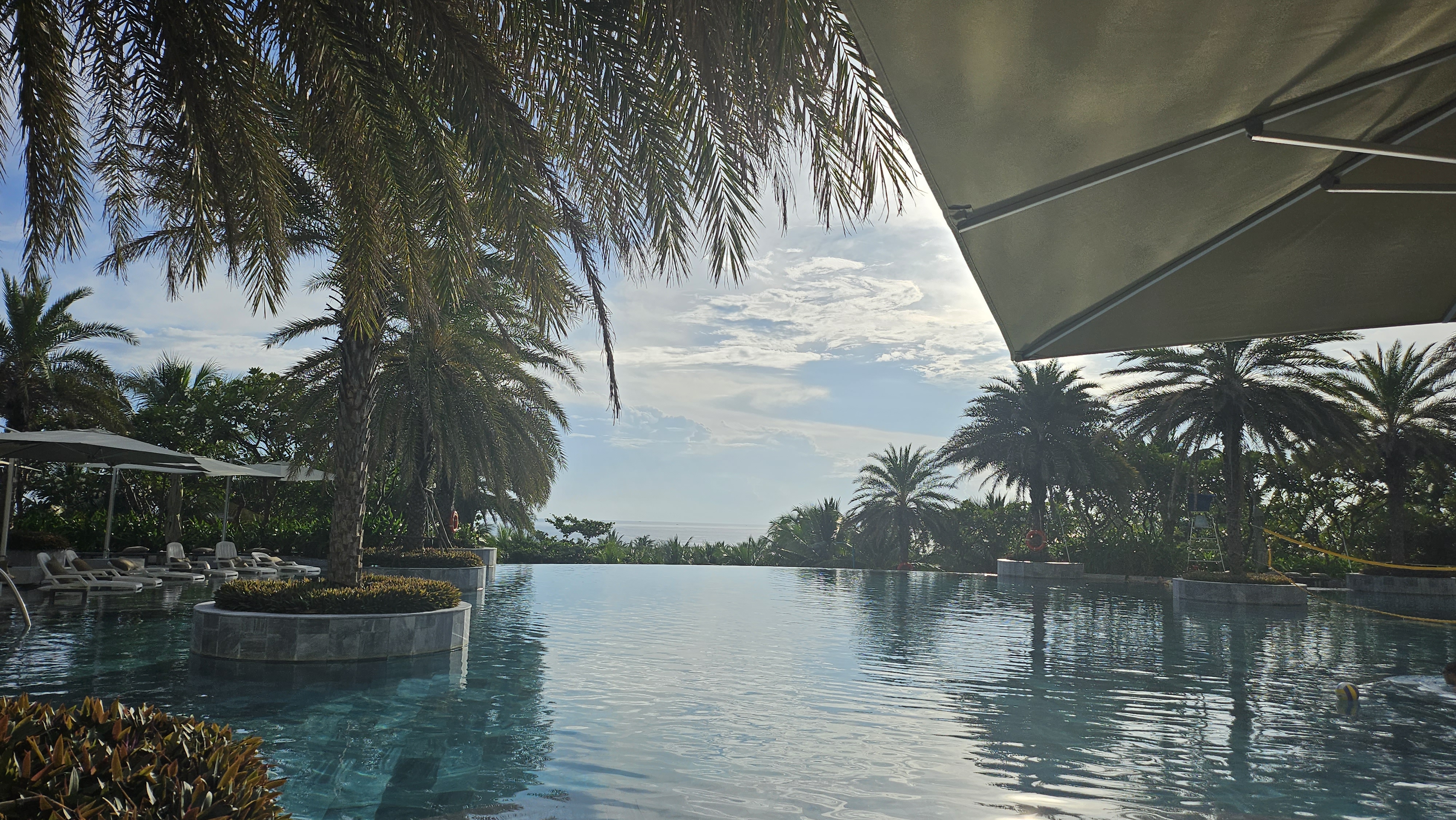 메인 수영장 인피니티 풀입니다. 사람 없을 때 조식 먹으러 갈 때 찍어봤어요.