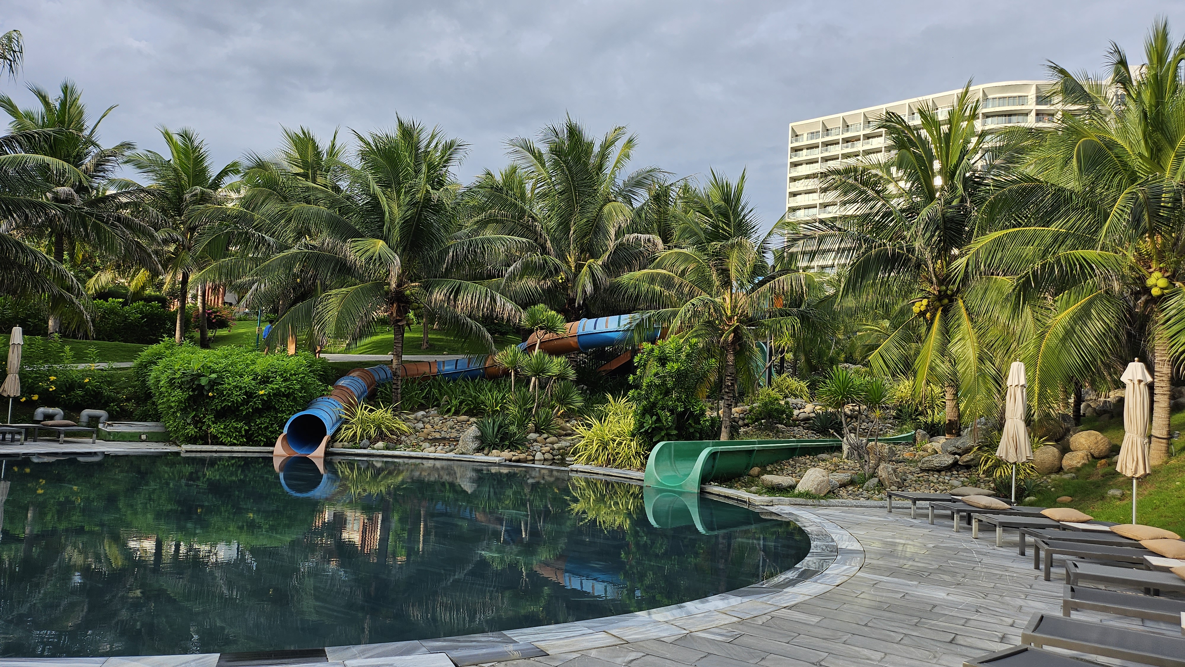 리조트 내에 어린이 워터파크가 있으며, 성인용 슬라이드와 수영장도 엄청 크게 잘되어있습니다.