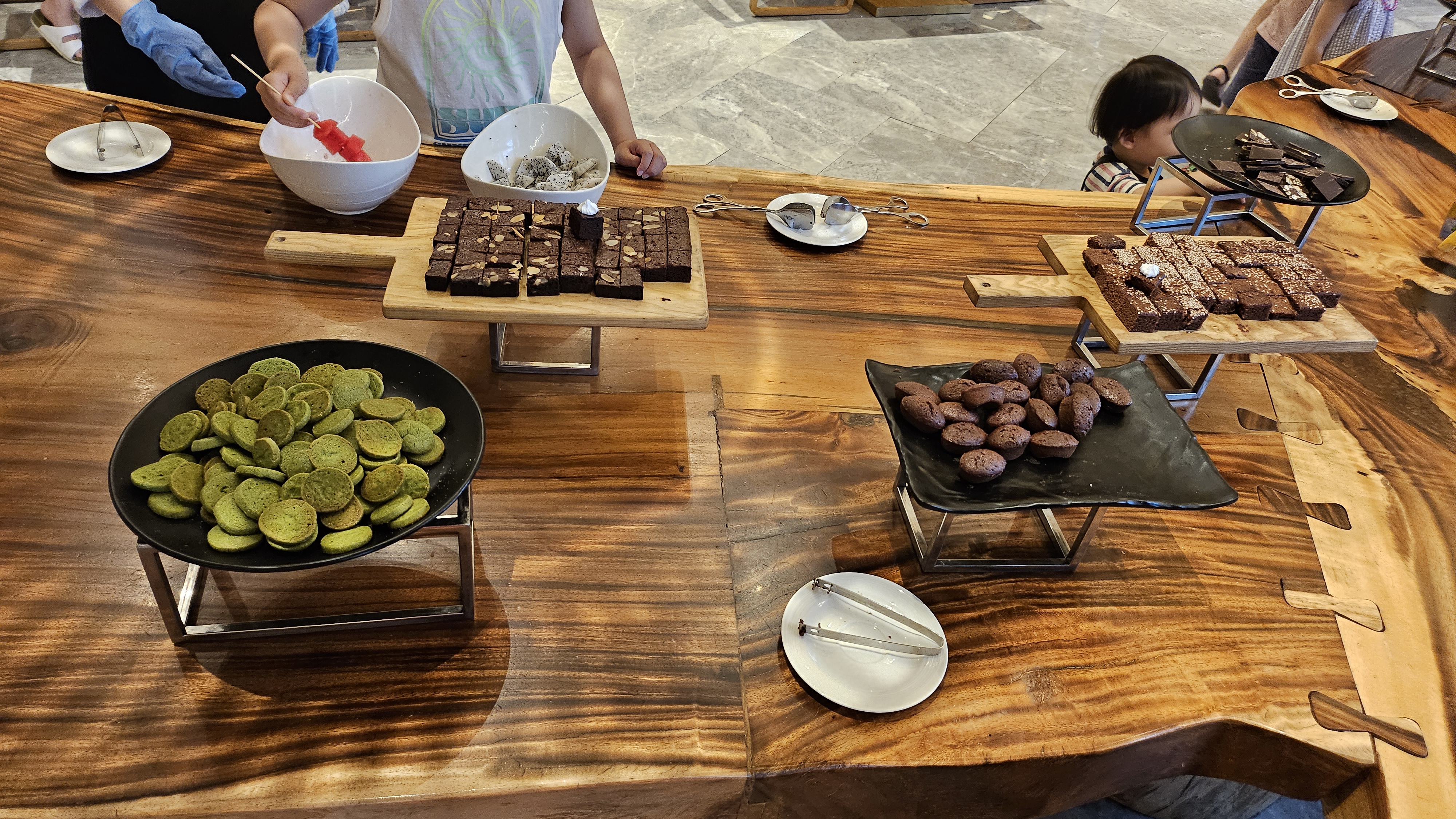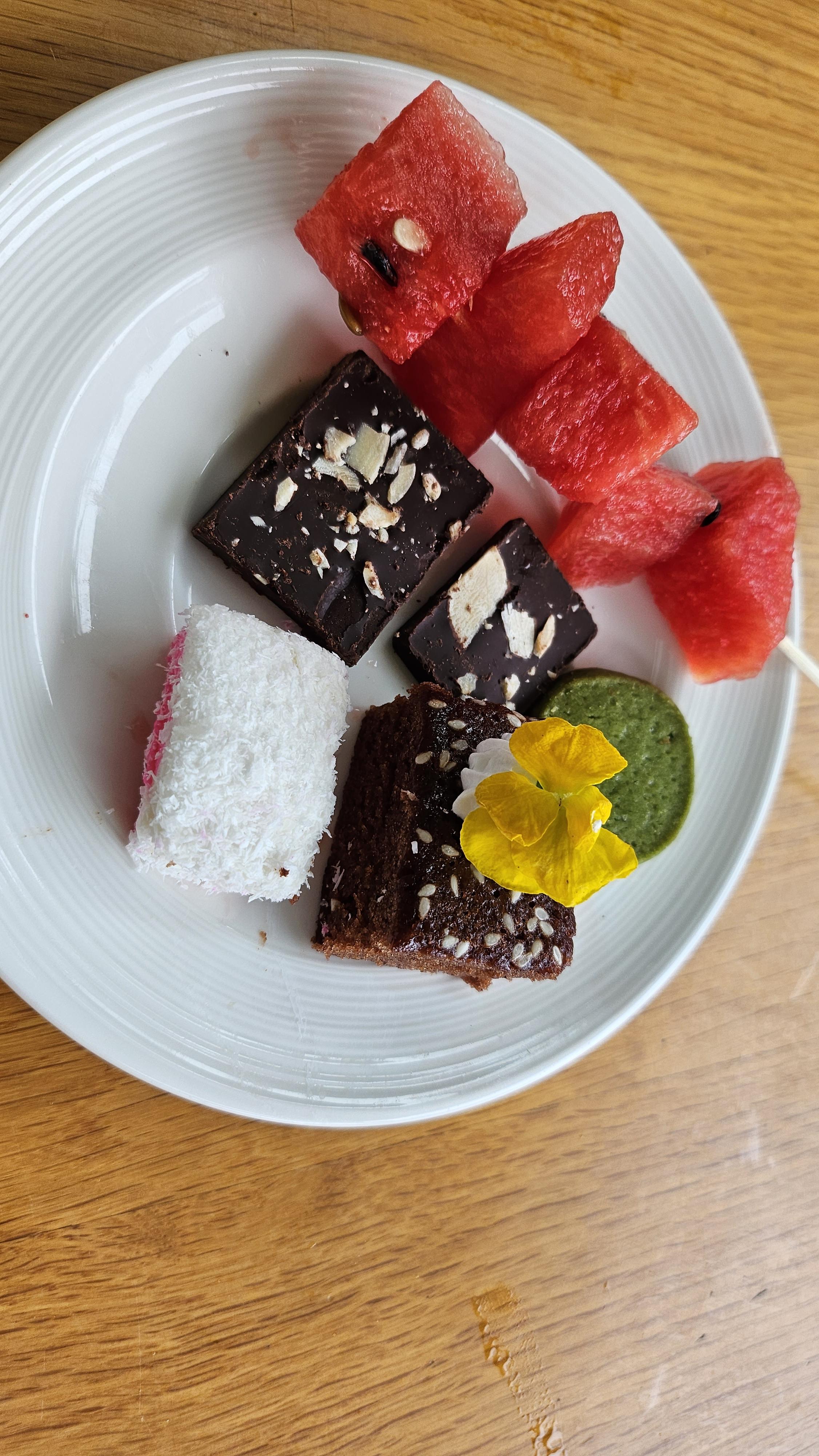 초콜릿, 쿠키, 케이크, 수박등 조금 담아봤어요.