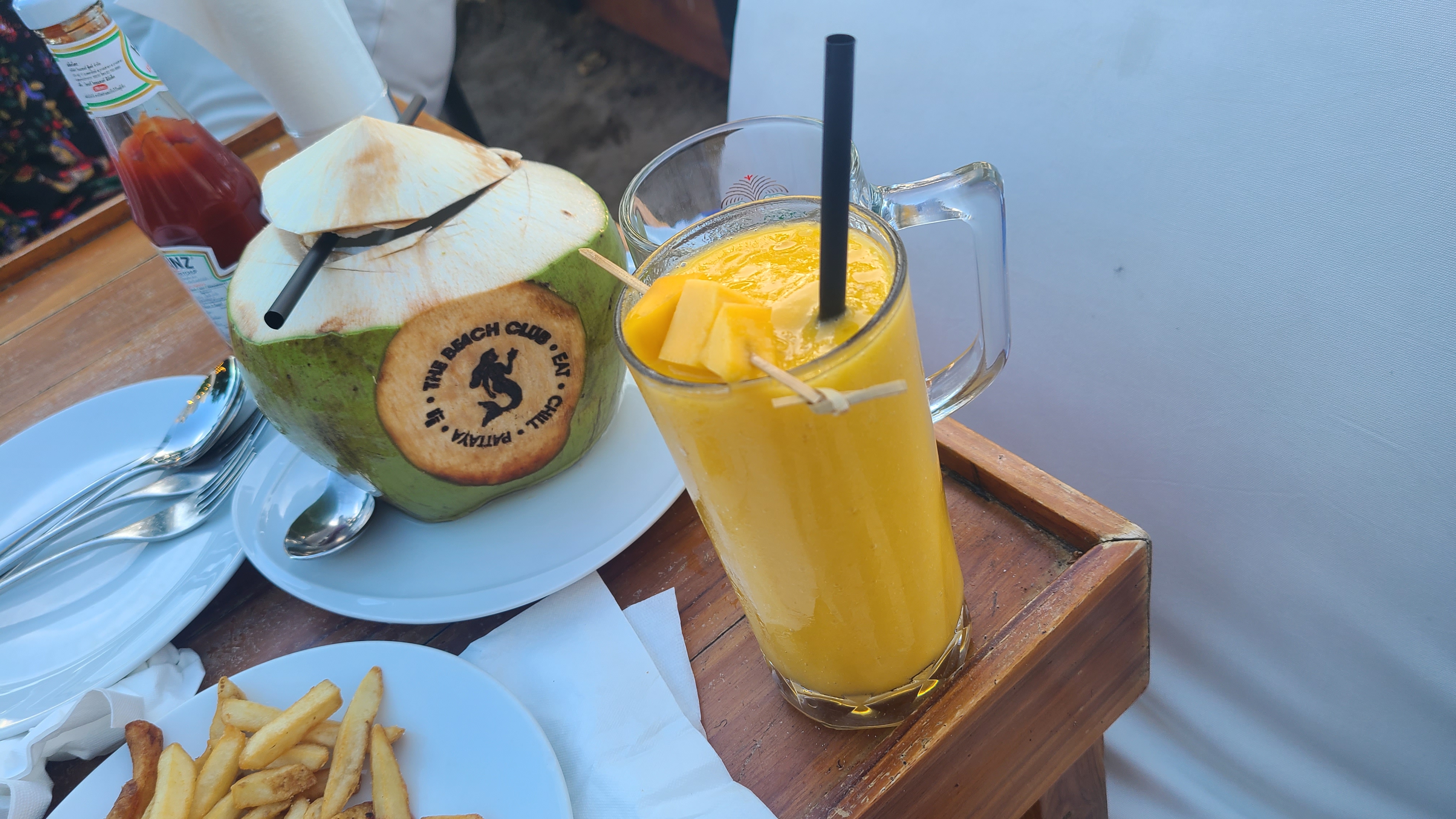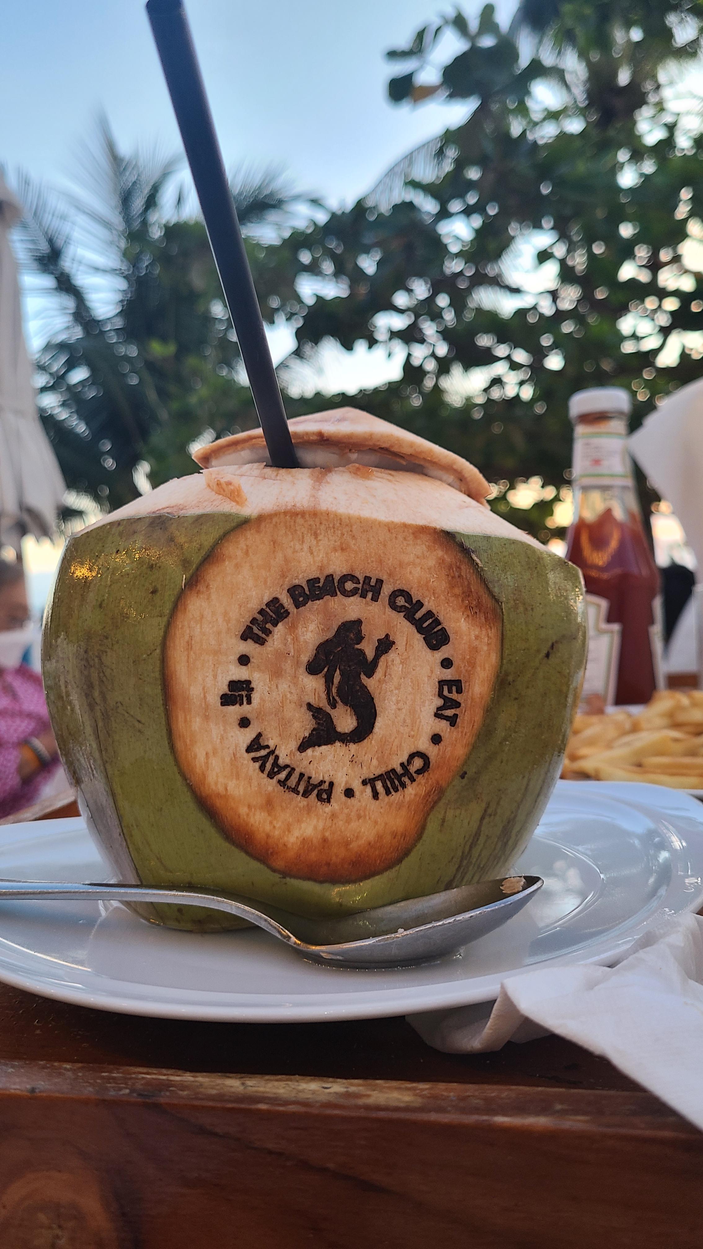 더 비치클럽 코코넛 음료에는 빨대랑 코코넛 속살을 파 먹을 수 있게 숟가락도 줬어요.